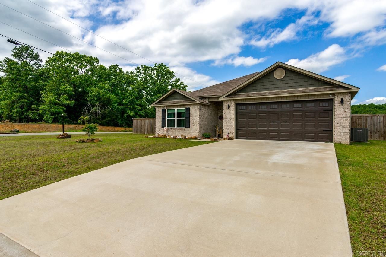 Nearly new 4-bedroom, 2-bath home in Homestead at the Gap offering 1,896 sqft on a desirable 0.21-acre corner lot. The open floor plan features an electric fireplace and flows into a spacious kitchen with granite countertops, a large island with breakfast bar, and oversized pantry. LVP flooring runs throughout all living and wet areas with carpet in the bedrooms, and ceiling fans are included in every bedroom. The primary suite offers double vanities and an oversized walk-in closet. Enjoy outdoor living on the oversized covered back porch overlooking the beautifully landscaped yard with a fully fenced 6-foot wooden privacy fence. Solar panels provide outstanding energy efficiency, and the seller reports no electric bill for over a year. Additional features include a dedicated laundry room and two-car garage. Located at a Conway address in the Vilonia School District, this home offers a peaceful setting just outside of town while still being only minutes from shopping, dining, and entertainment.
